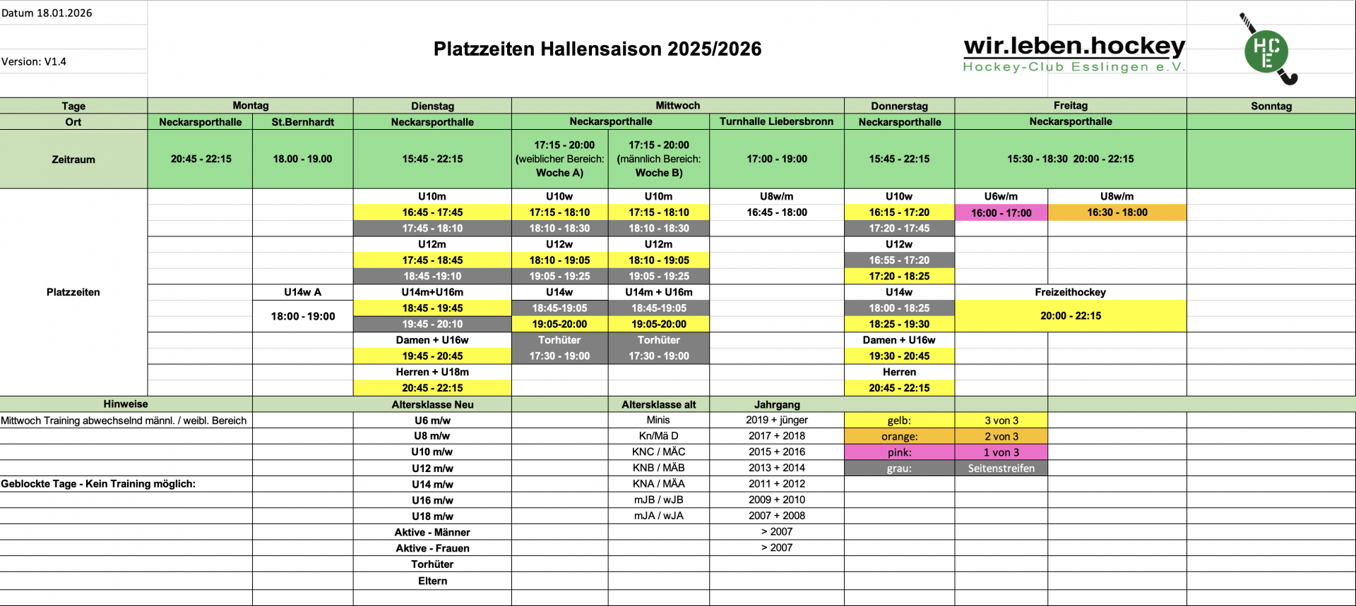 Trainingszeiten Halle 2026